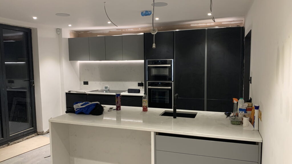 Here we lit a progressively designed Terrace house in Didsbury, and provided a solution to make the lighting fit the design and the multitude of features we had to illuminate. We used zones of dimming to control feature pendants, LED tape and LED downlights. We are now working on a lighting scheme for their outdoor space.